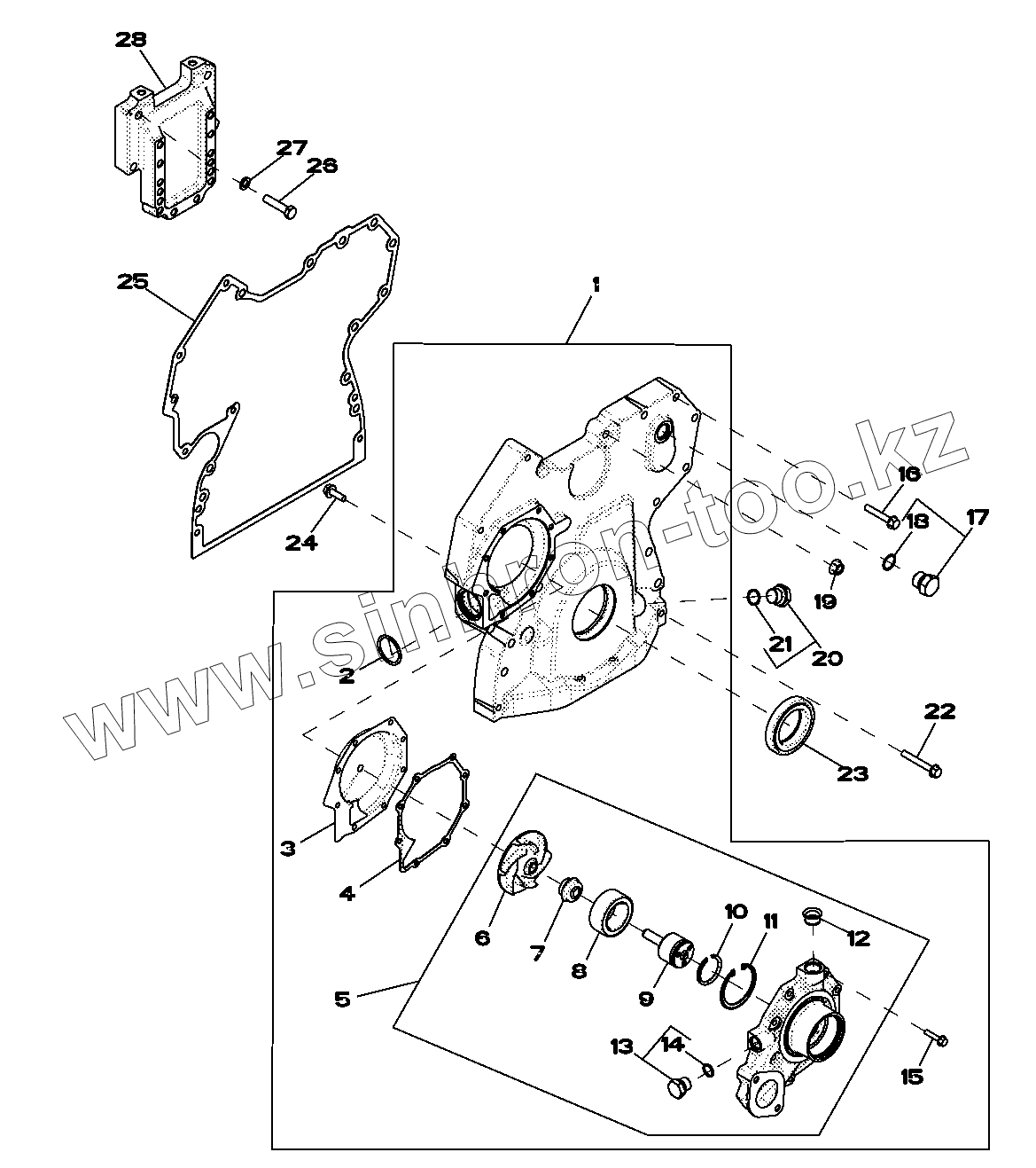 Каталог запасных частей к технике: John Deere JD-315SK(часть 1). Крышка распределительной шестерни/Водяной насос