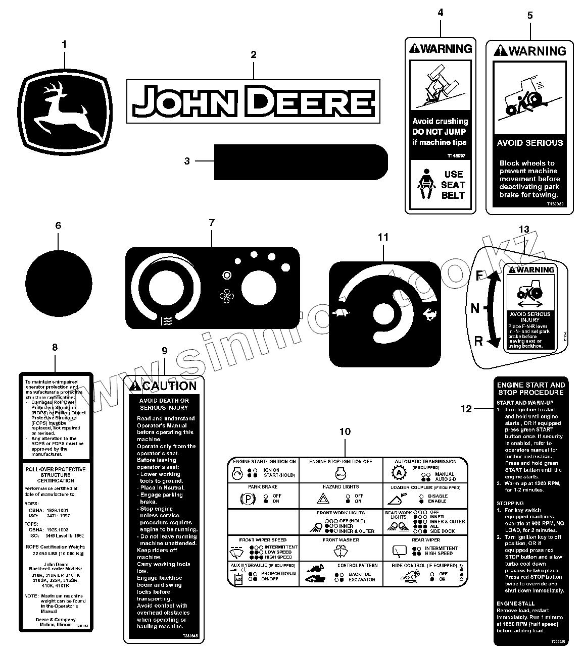 Каталог запасных частей к технике: John Deere JD-315SK(часть 1). Таблички и наклейки, кабина