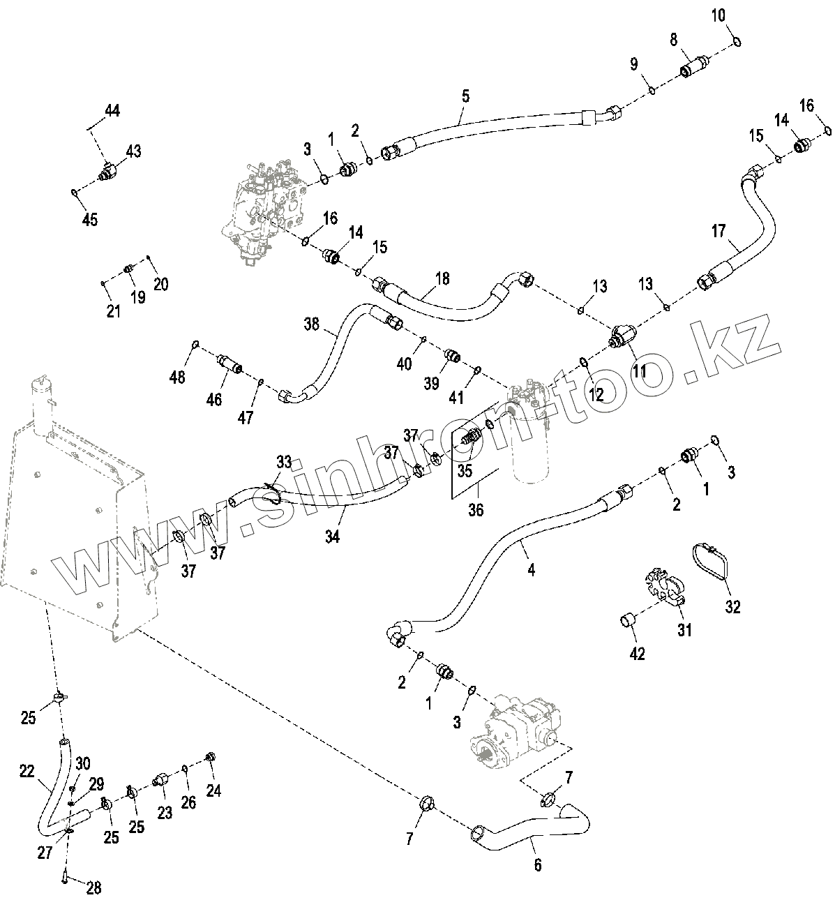 Каталог запасных частей к технике: John Deere JD-315SK(часть 2). Главн. гидравл. трубопровод (-234969)