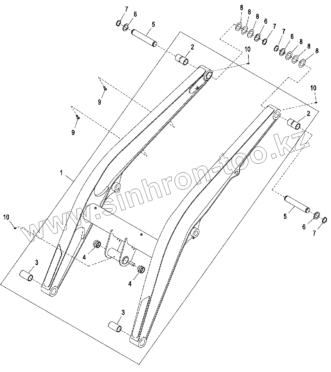Каталог запасных частей к технике: John Deere JD-315SK(часть 2). Подъемный рычаг погрузчика
