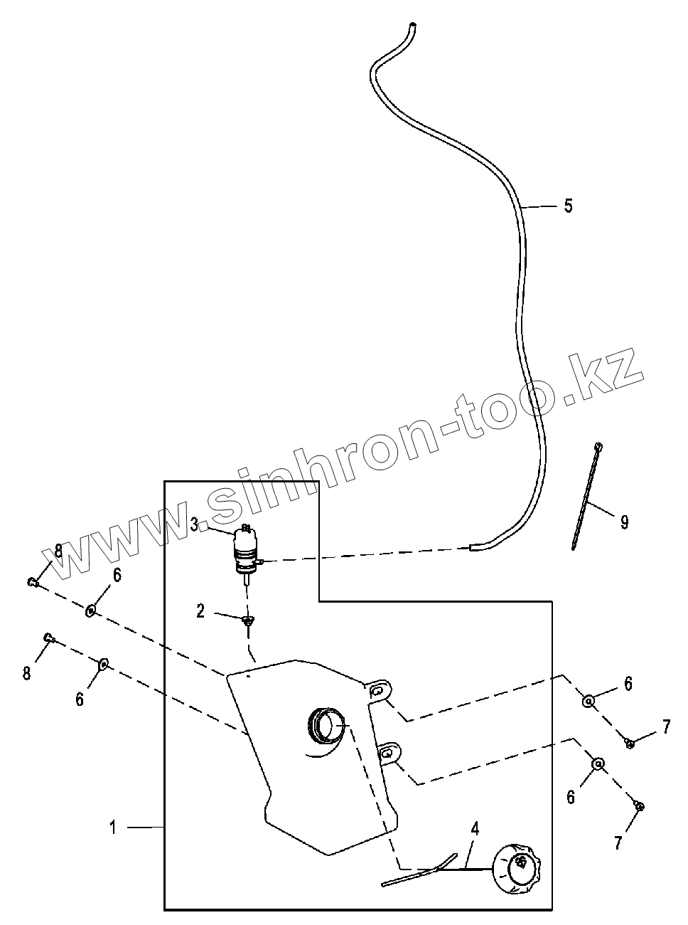 Каталог запасных частей к технике: John Deere JD-315SK(часть 2). Резервуар стеклоомывателя
