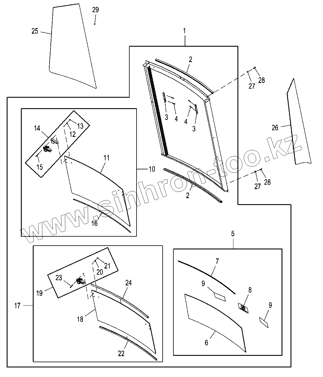 Каталог запасных частей к технике: John Deere JD-315SK(часть 2). Задние окна кабины