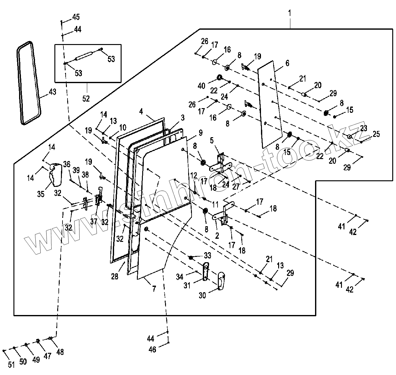 Каталог запасных частей к технике: John Deere JD-325SK. Дверь левая (кабина)