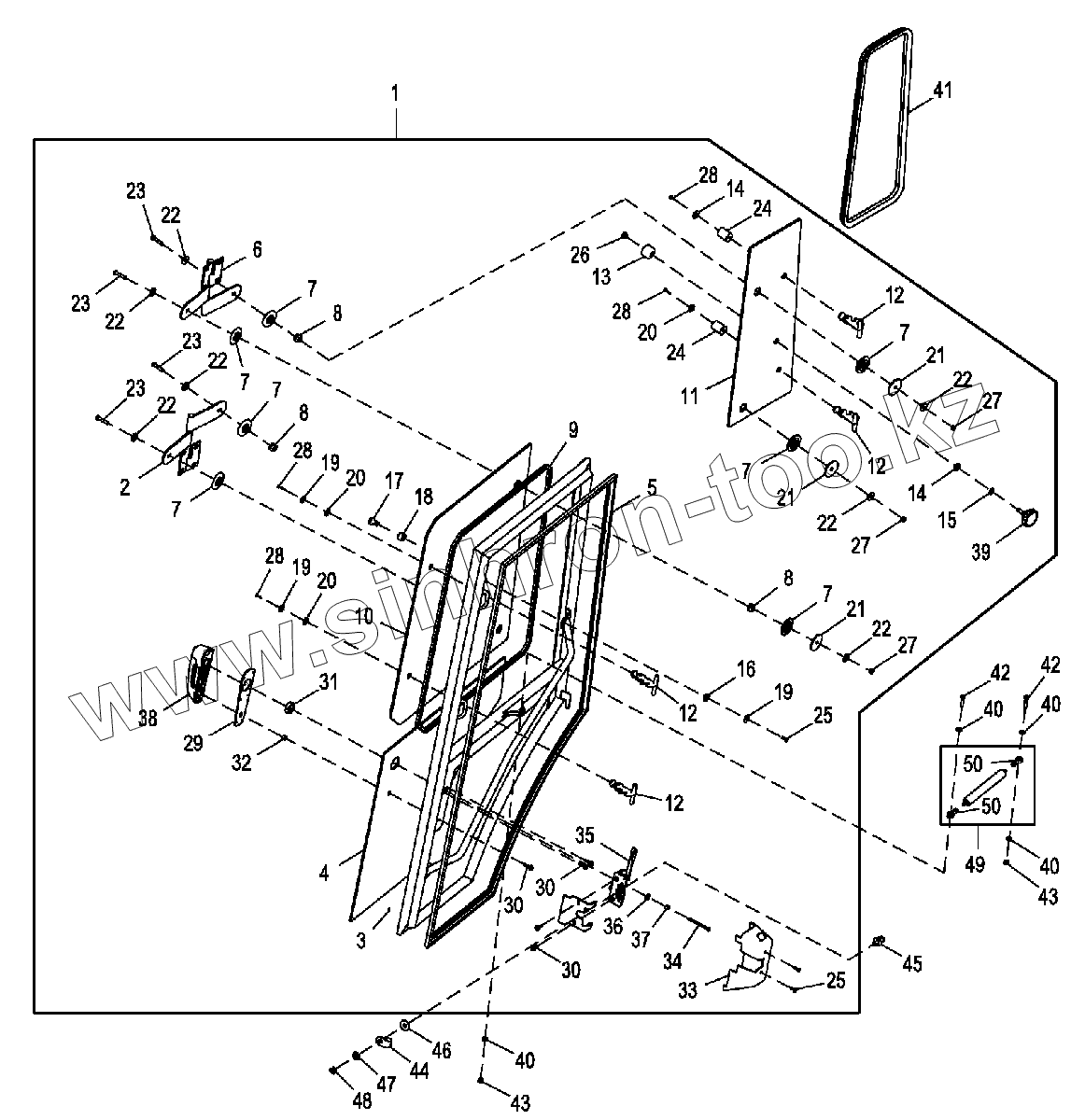 Каталог запасных частей к технике: John Deere JD-325SK. Дверь правая (кабина)