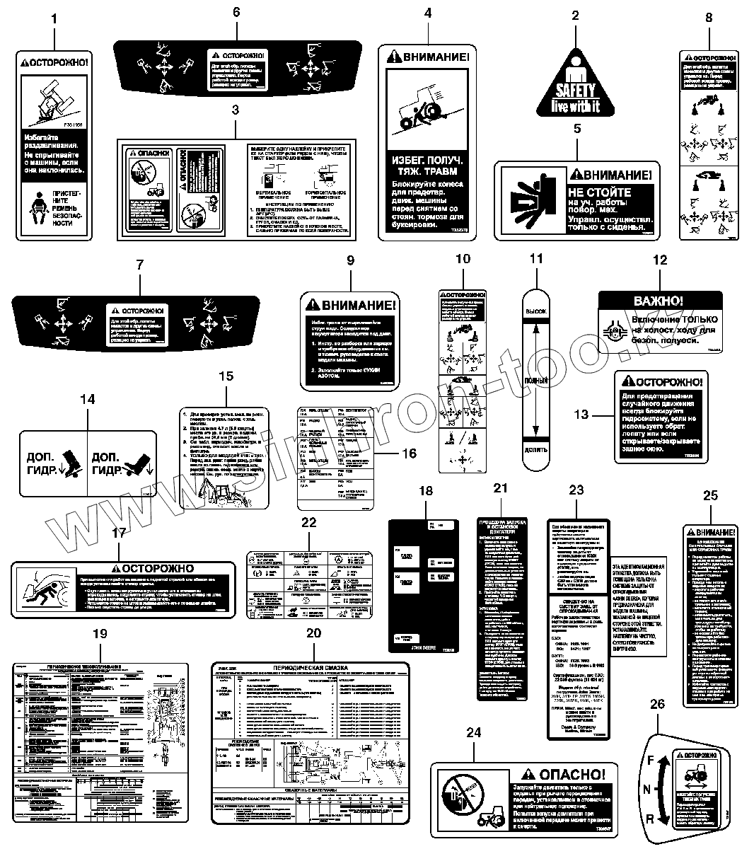 Каталог запасных частей к технике: John Deere JD-325SK. Этикетки и таблички, русский