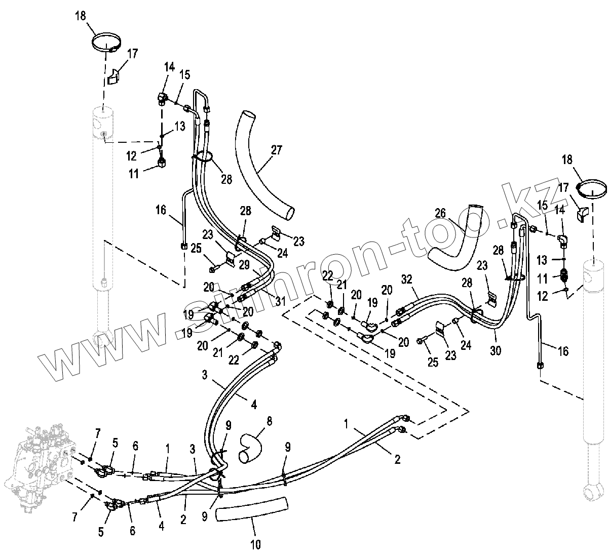 Каталог запасных частей к технике: John Deere JD-325SK. Гидросистема цилиндра стабилизатора (234970-)