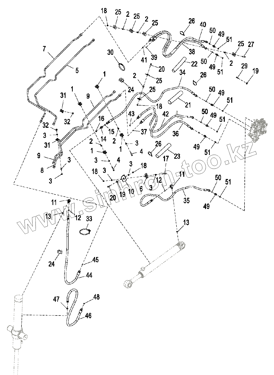 Каталог запасных частей к технике: John Deere JD-325SK. Правый трубопровод погрузчика