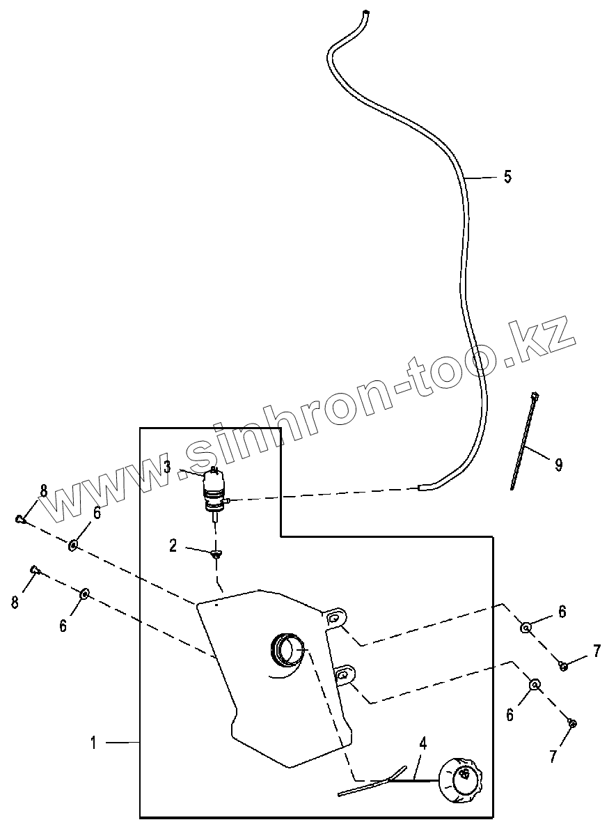 Каталог запасных частей к технике: John Deere JD-325SK. Резервуар стеклоомывателя