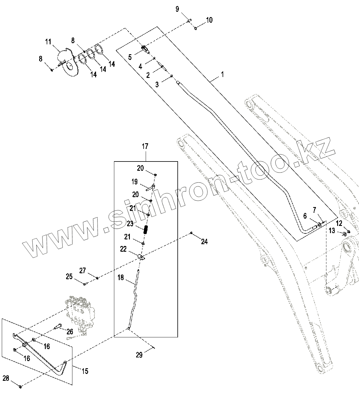 Каталог запасных частей к технике: John Deere JD-325SK. Рычажный механизм выравнивания ковша