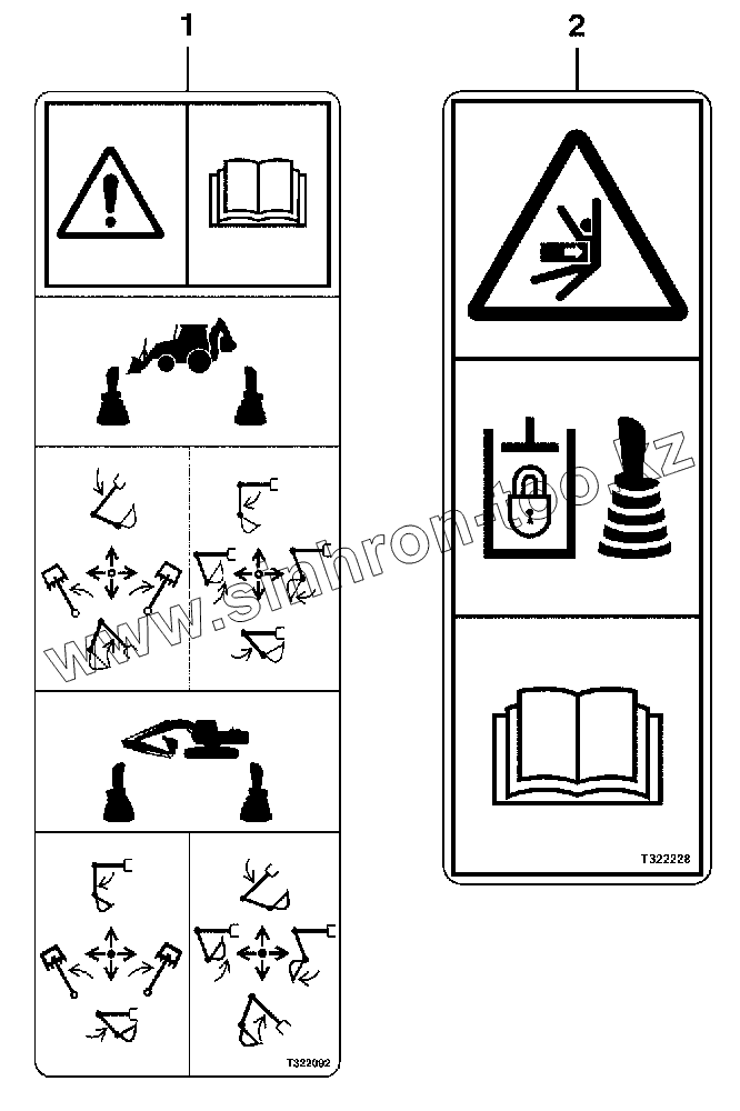 Каталог запасных частей к технике: John Deere JD-325SK. Таблички и наклейки без текста, контур управления