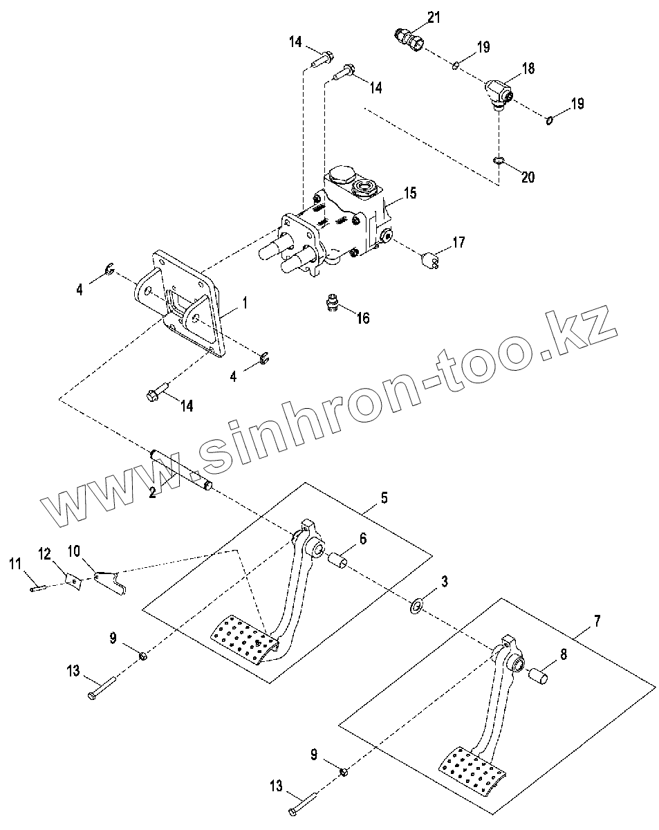 Каталог запасных частей к технике: John Deere JD-325SK. Тормозной клапан и педали