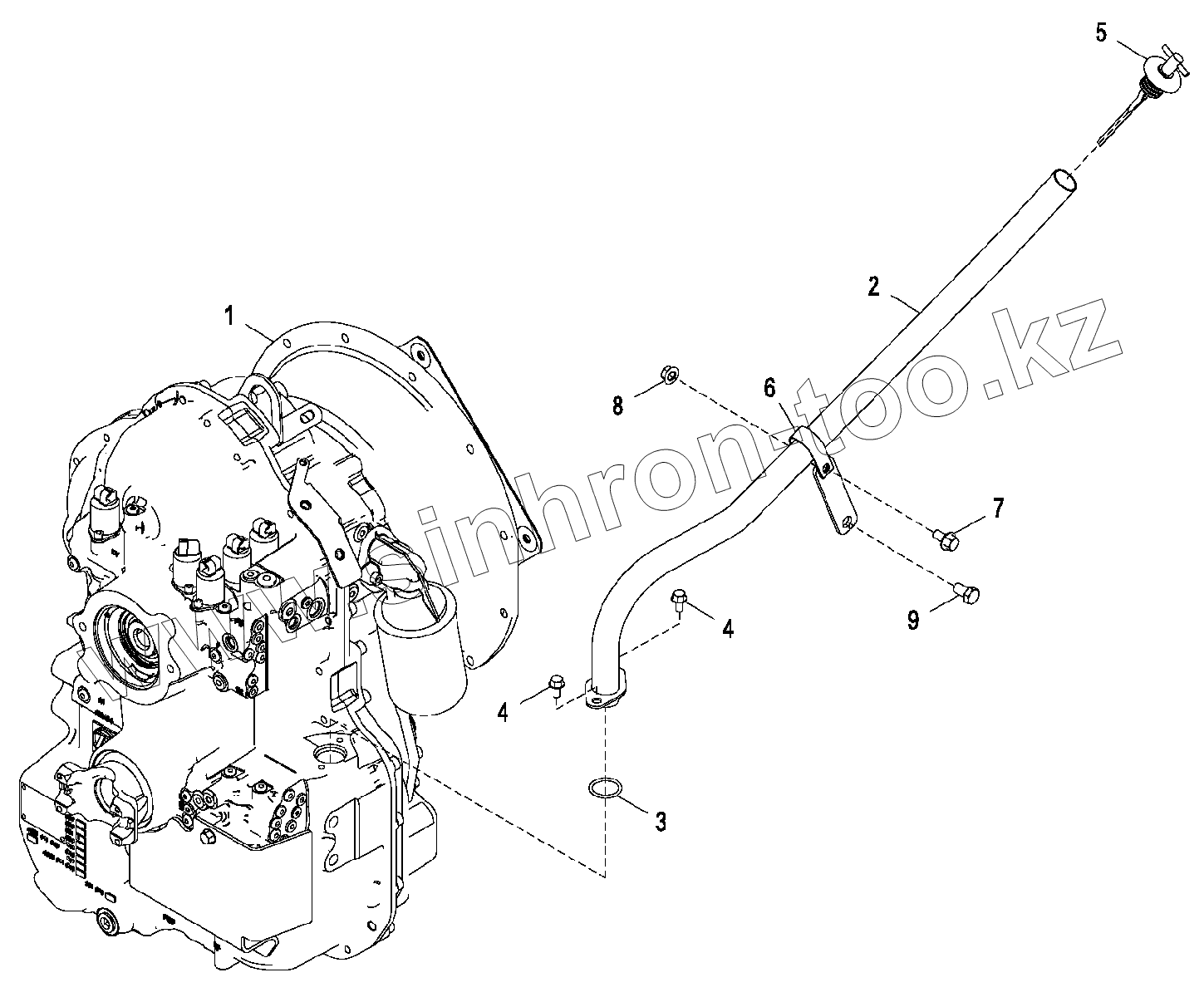 Каталог запасных частей к технике: John Deere JD-325SK. Трансмиссия, масляный щуп и трубка с MFWD