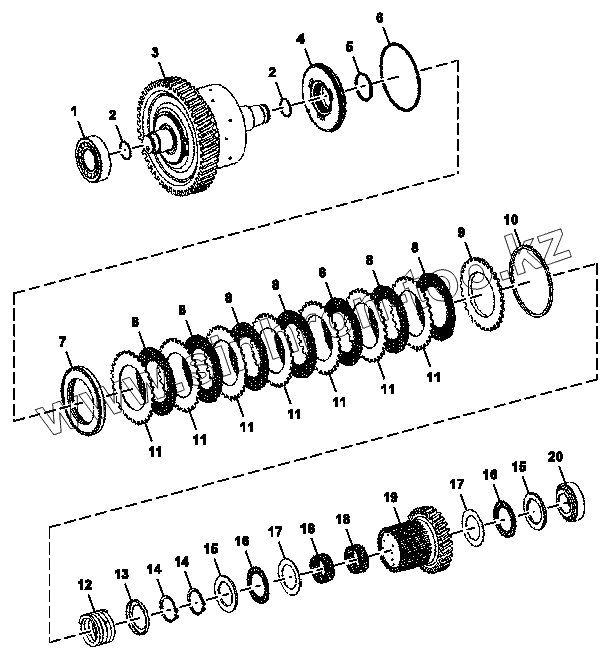 Каталог запасных частей к технике: John Deere JD-325SK. Узел муфты верхнего диапазона переднего хода