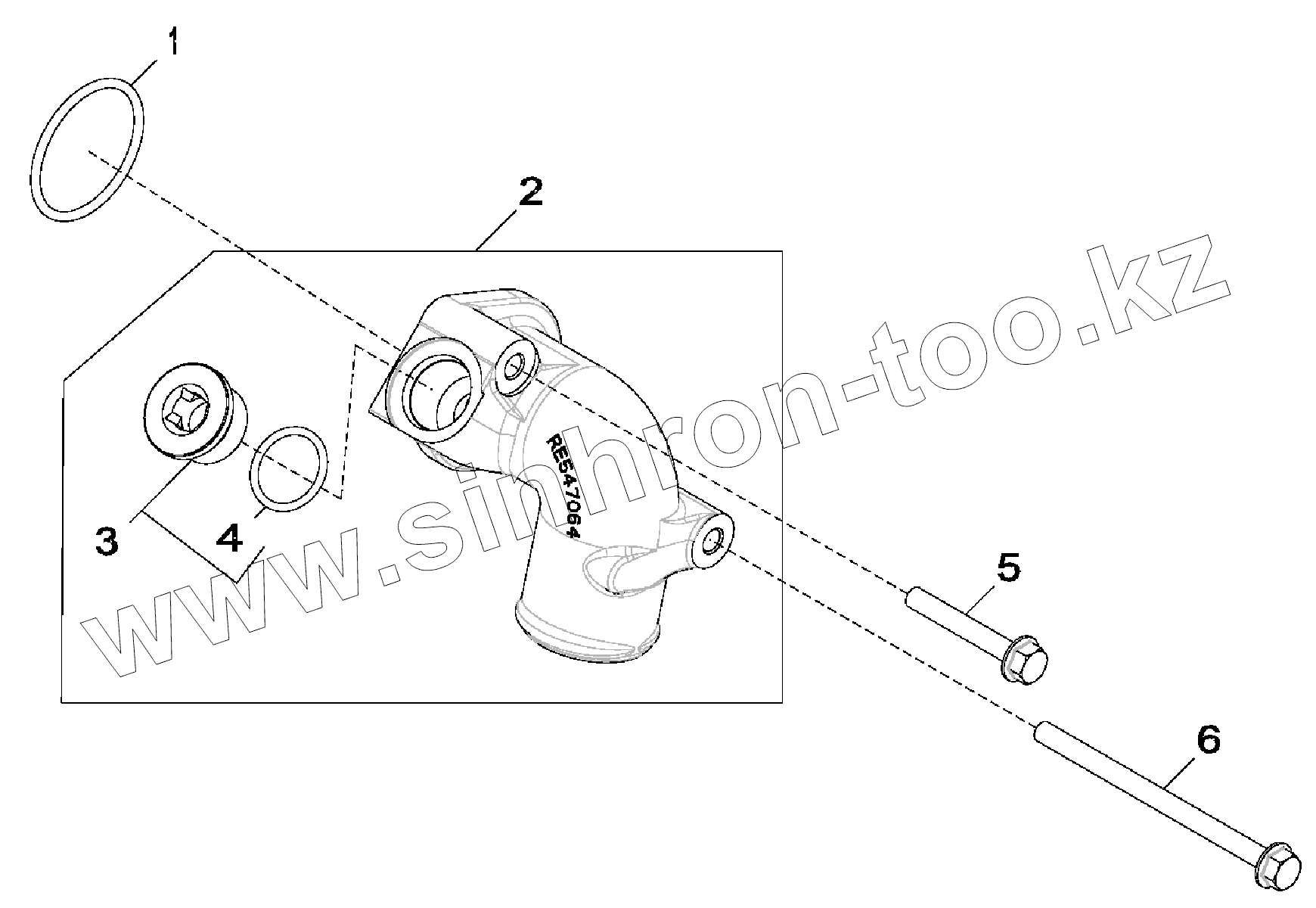 Каталог запасных частей к технике: John Deere JD-325SK. Впуск водяного насоса