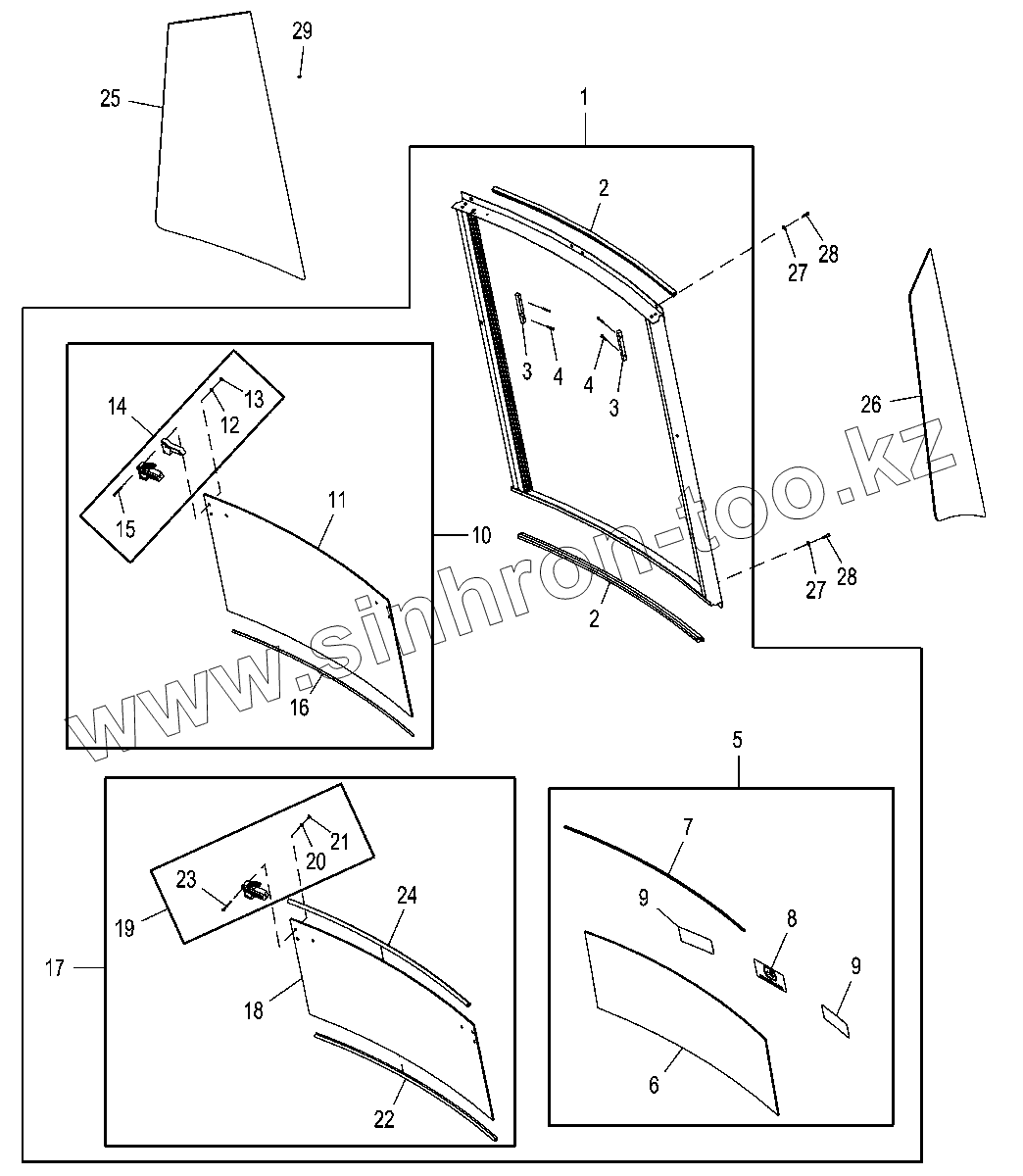 Каталог запасных частей к технике: John Deere JD-325SK. Задние окна кабины