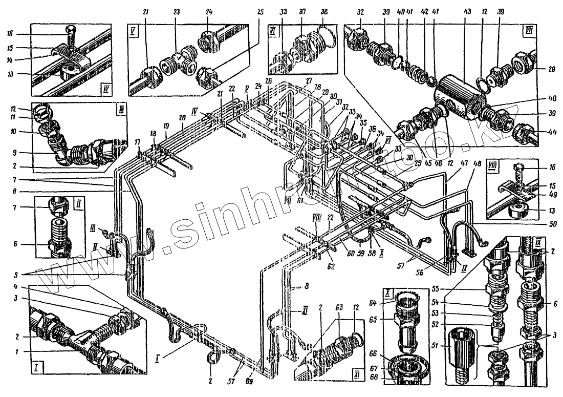 Каталог запасных частей к технике: ККЗ КС-4561А. 4561А.103.00.000 Установка трубопроводов на шасси