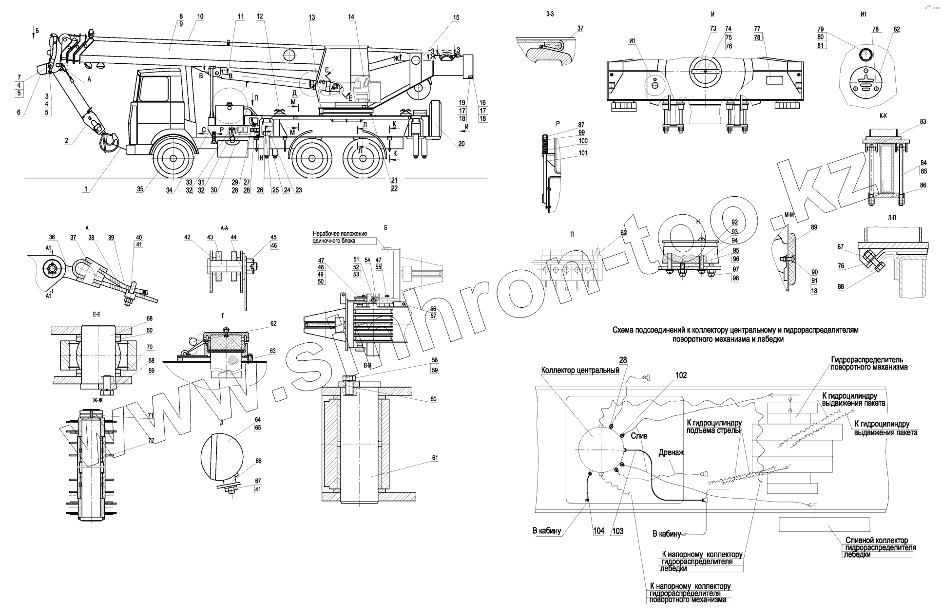 Каталог запасных частей к технике: ККЗ КС-5576Б. Общий вид крана КС-5576Б.000.00.000