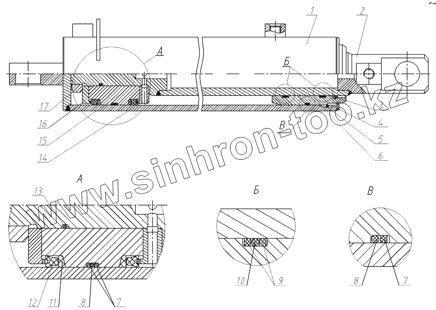 Каталог запасных частей к технике: ККЗ КС-6476. ГИДРОЦИЛИНДР ВЫДВИЖЕНИЯ БАЛОК Ц-080.177.00.000