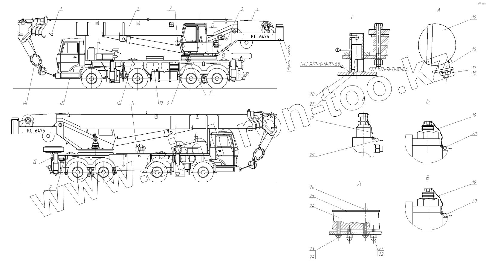 Каталог запасных частей к технике: ККЗ КС-6476. ОБЩИЙ ВИД КРАНА КС-6476.000.00.000