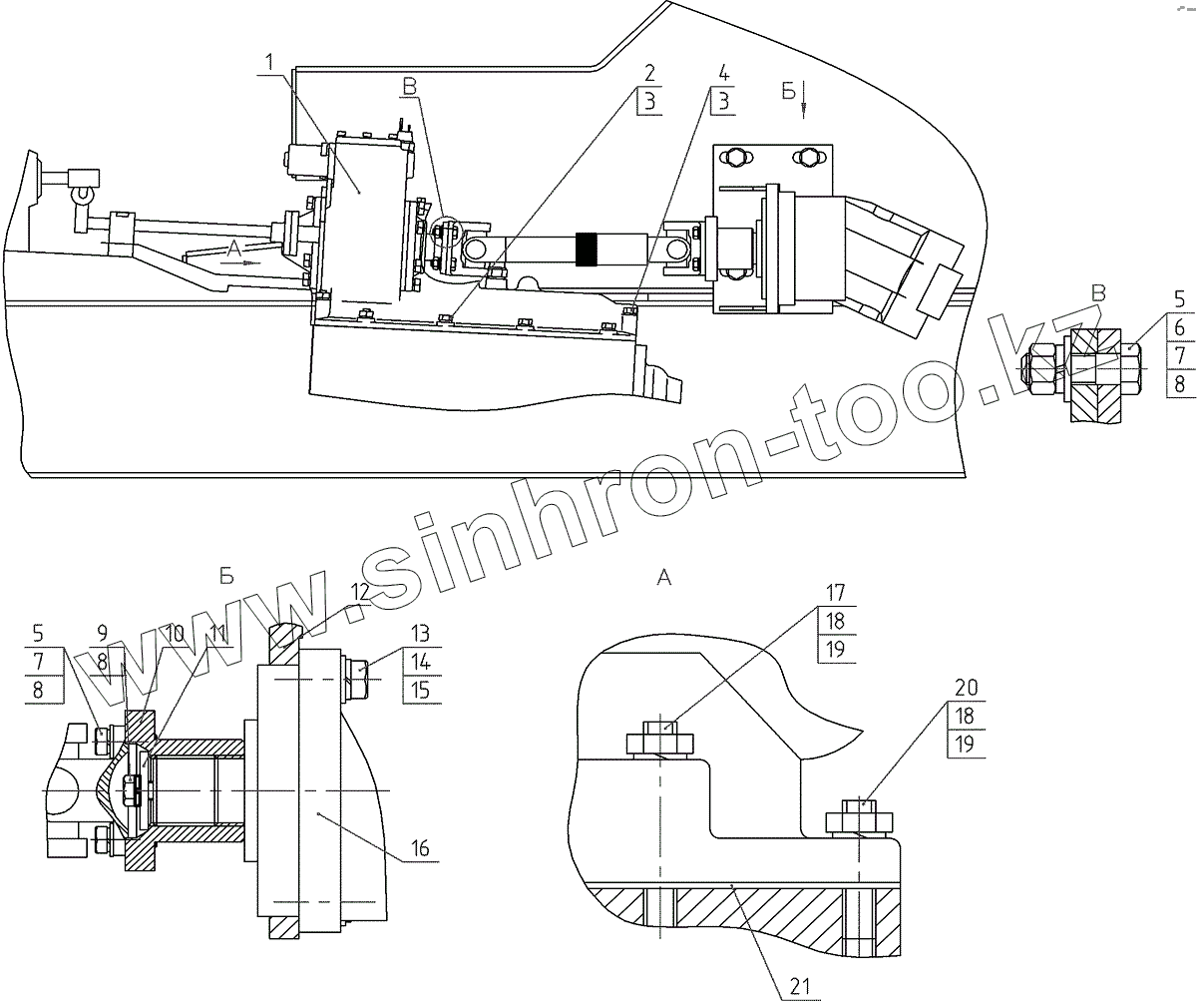 Каталог запасных частей к технике: Клинцовский автокрановый завод КС-65719-1К. Привод насоса