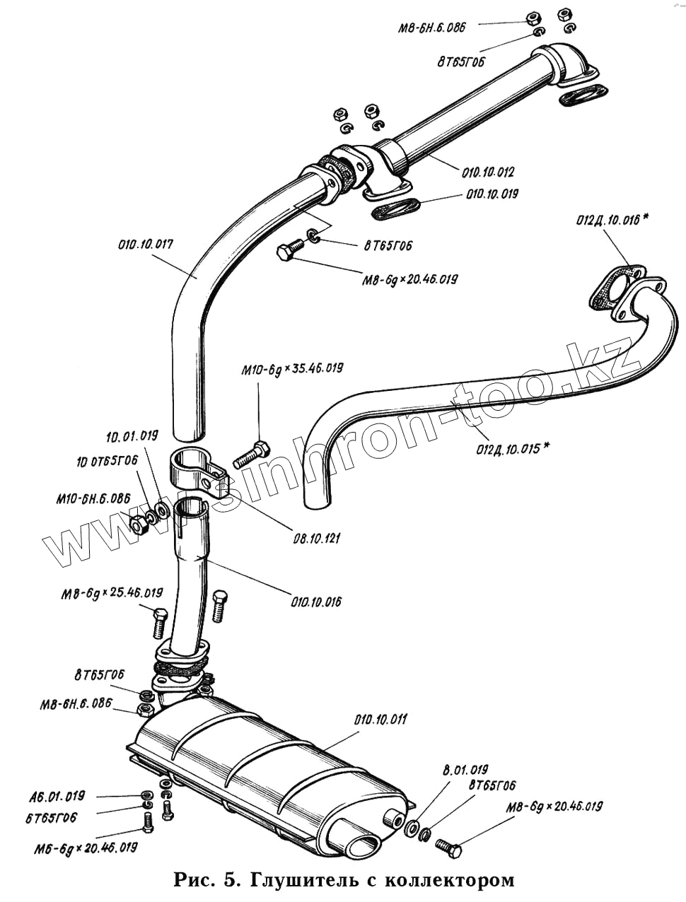 Каталог запасных частей к технике: КМЗ-012. Глушитель с коллектором 010.10.001