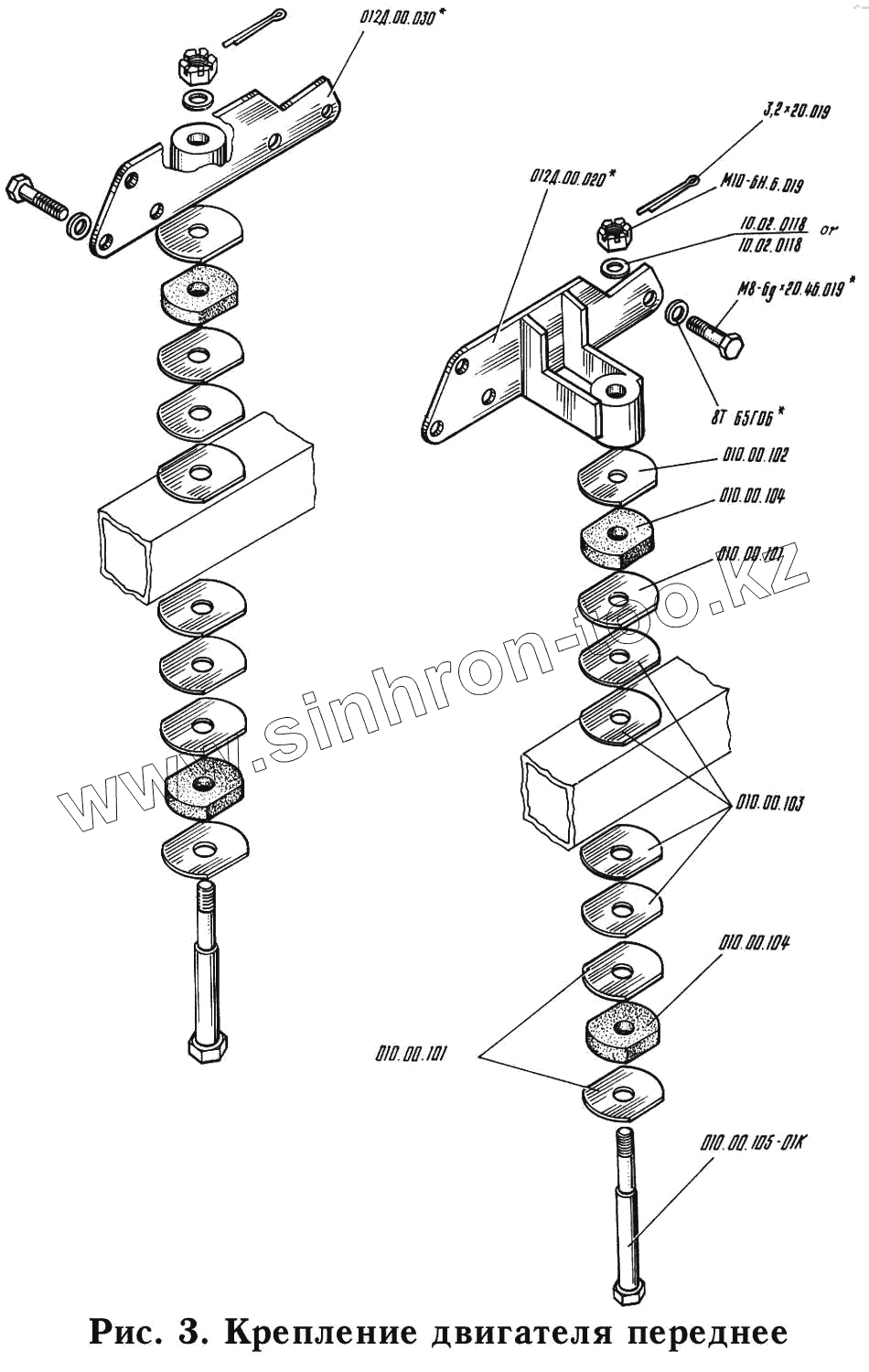 Каталог запасных частей к технике: КМЗ-012. Крепление двигателя переднее 010.00.010-01К