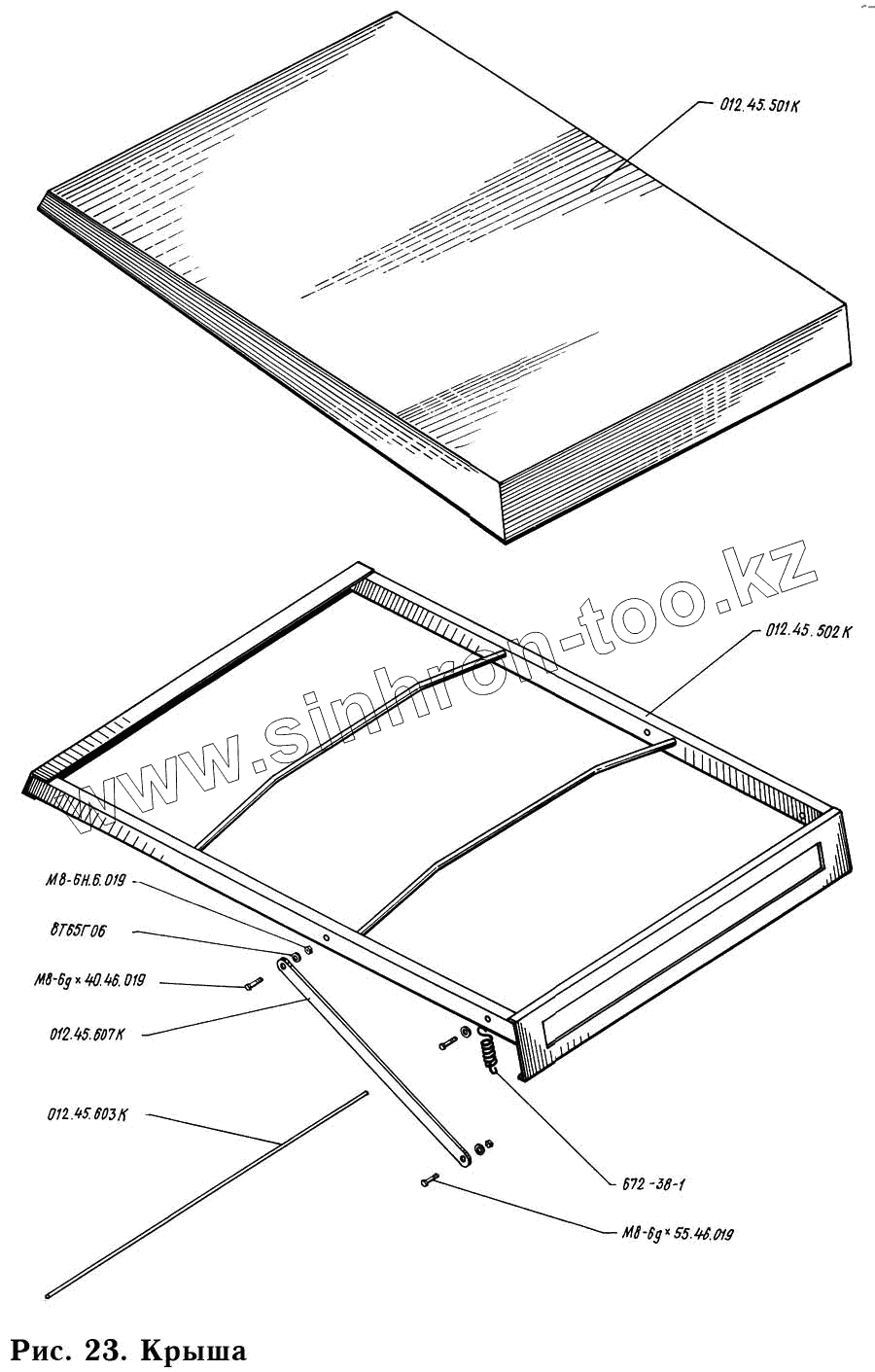 Каталог запасных частей к технике: КМЗ-012. Крыша 012.45.500К