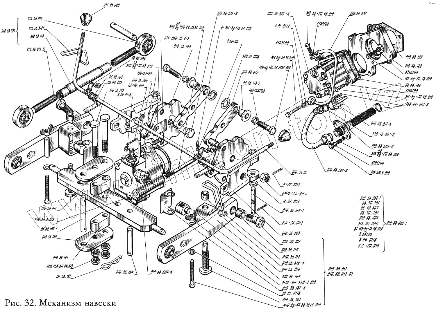 Каталог запасных частей к технике: КМЗ-012. Механизм навески 010.56.001-1