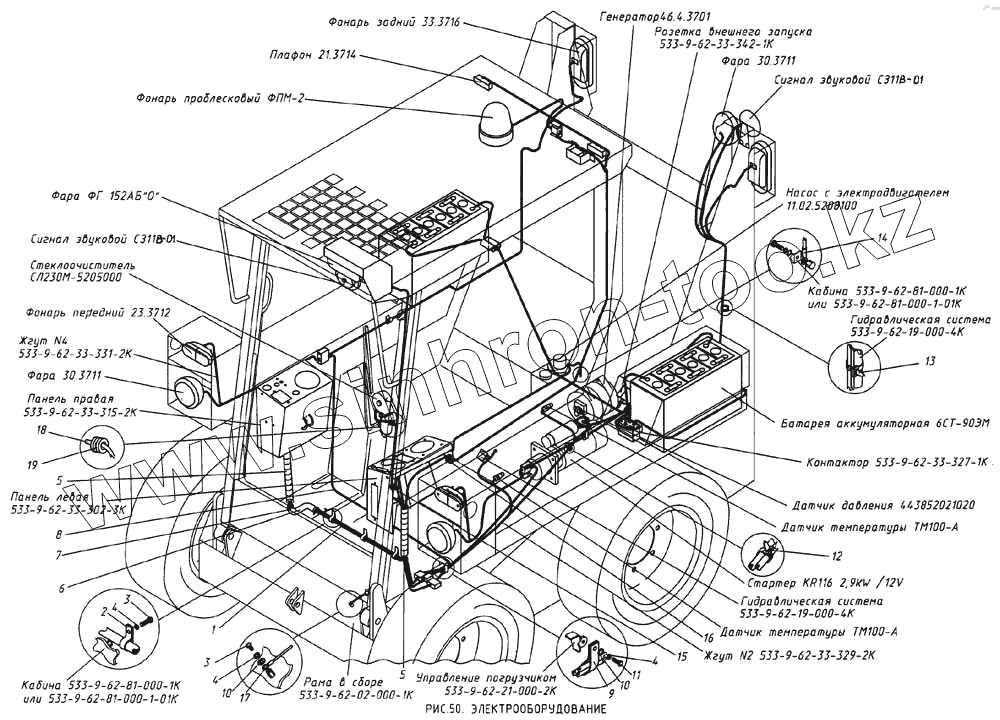 Каталог запасных частей к технике: КМЗ МКСМ-800. Электрооборудование