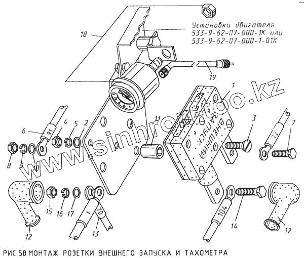 Каталог запасных частей к технике: КМЗ МКСМ-800. Монтаж розетки внешнего запуска и тахометра