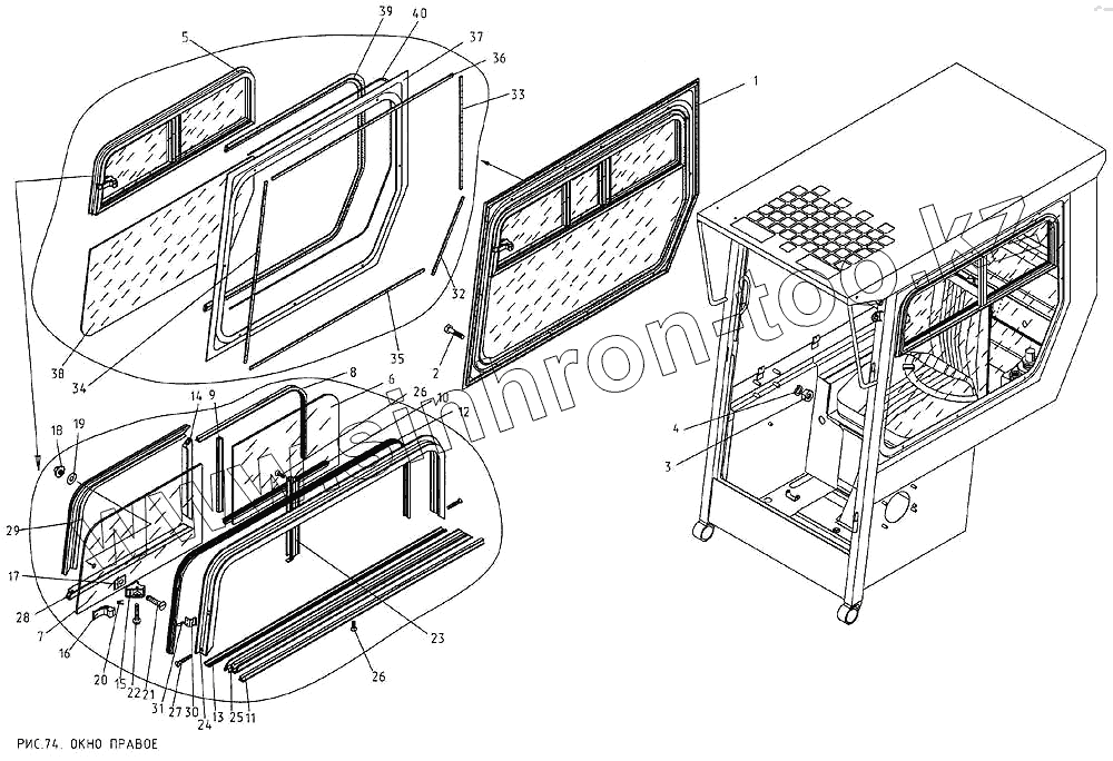 Каталог запасных частей к технике: КМЗ МКСМ-800. Окно правое
