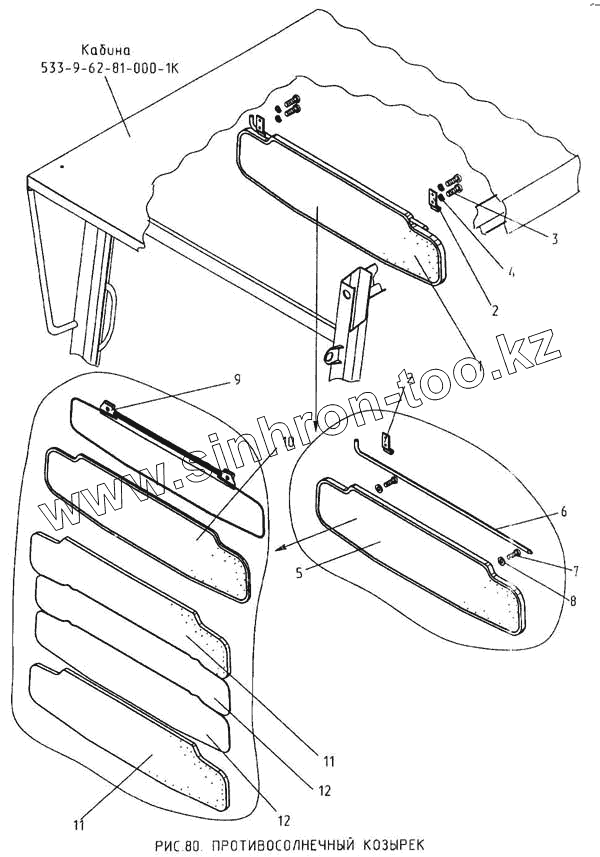 Каталог запасных частей к технике: КМЗ МКСМ-800. Противосолнечный козырек