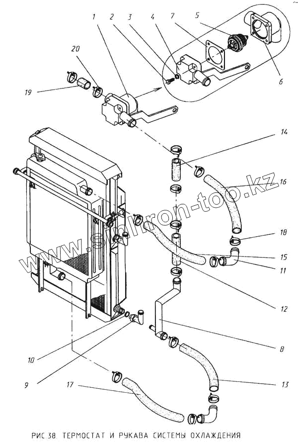 Каталог запасных частей к технике: КМЗ МКСМ-800. Термостат и рукава системы охлаждения