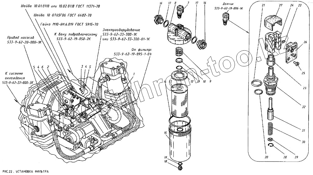Каталог запасных частей к технике: КМЗ МКСМ-800. Установка фильтра