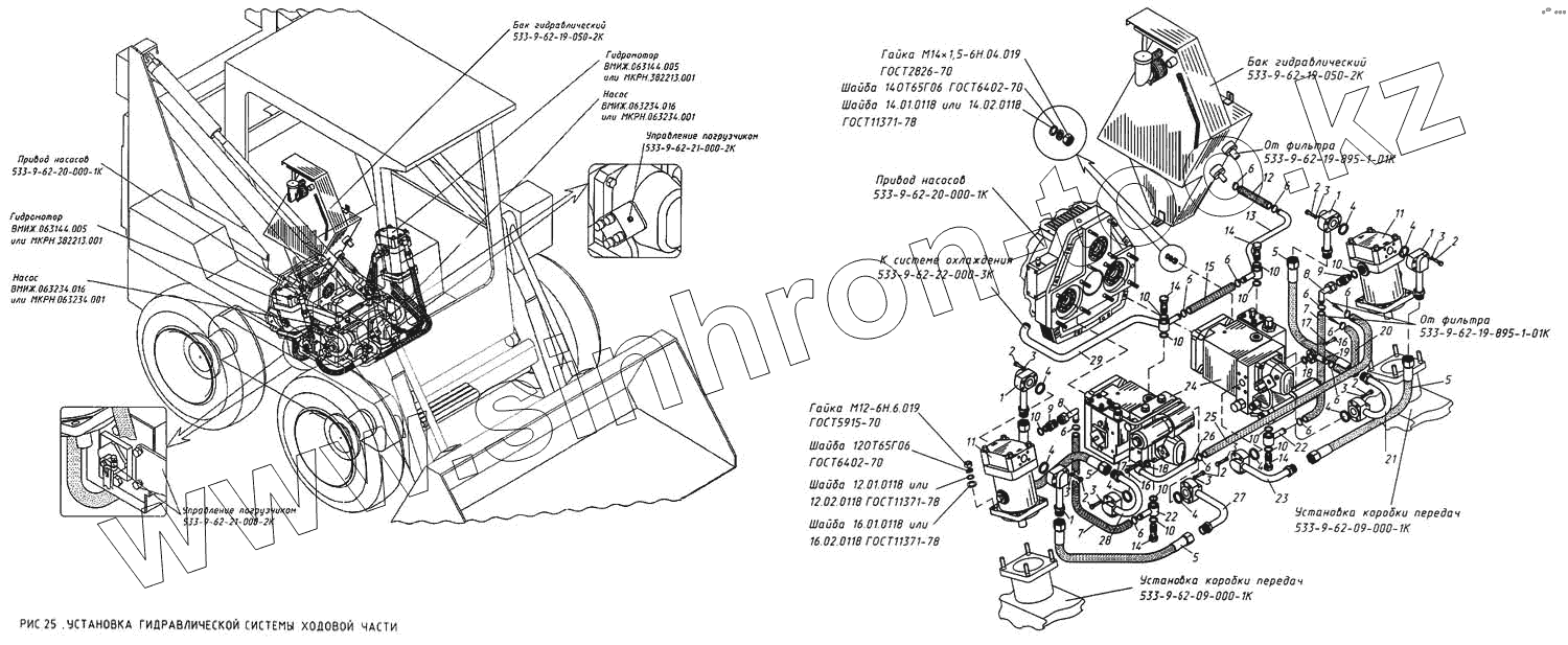 Каталог запасных частей к технике: КМЗ МКСМ-800. Установка гидравлической системы ходовой части