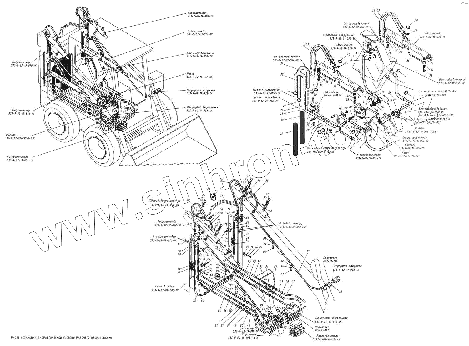 Каталог запасных частей к технике: КМЗ МКСМ-800. Установка гидравлической системы рабочего оборудования