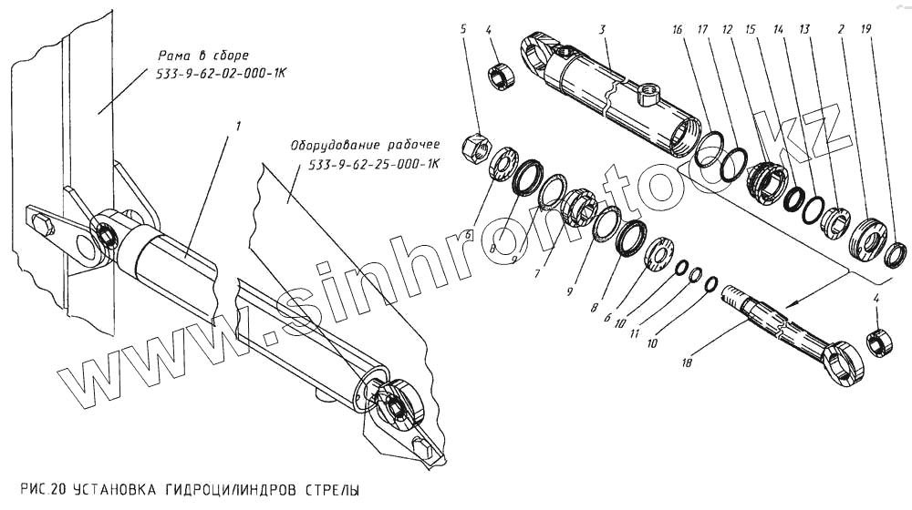 Каталог запасных частей к технике: КМЗ МКСМ-800. Установка гидроцилиндров стрелы