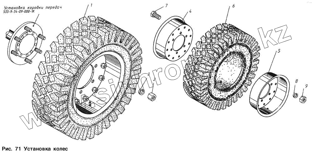 Каталог запасных частей к технике: КМЗ МКСМ-800. Установка колес