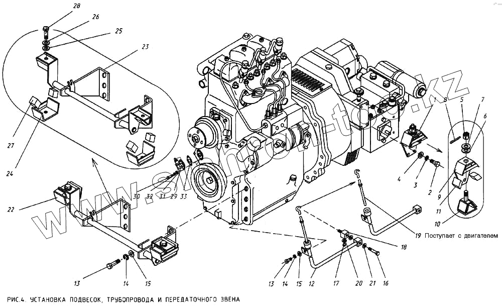 Каталог запасных частей к технике: КМЗ МКСМ-800. Установка подвесок, трубопровода и передаточного звена