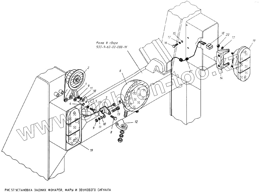 Каталог запасных частей к технике: КМЗ МКСМ-800. Установка задних фонарей, фары и звукового сигнала