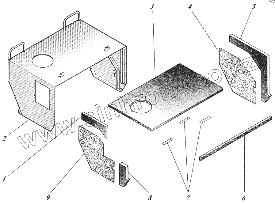 Каталог запасных частей к технике: КМЗ МКСМ-800. Капот 533Н-30-сб107 (МКСМ-800Н)