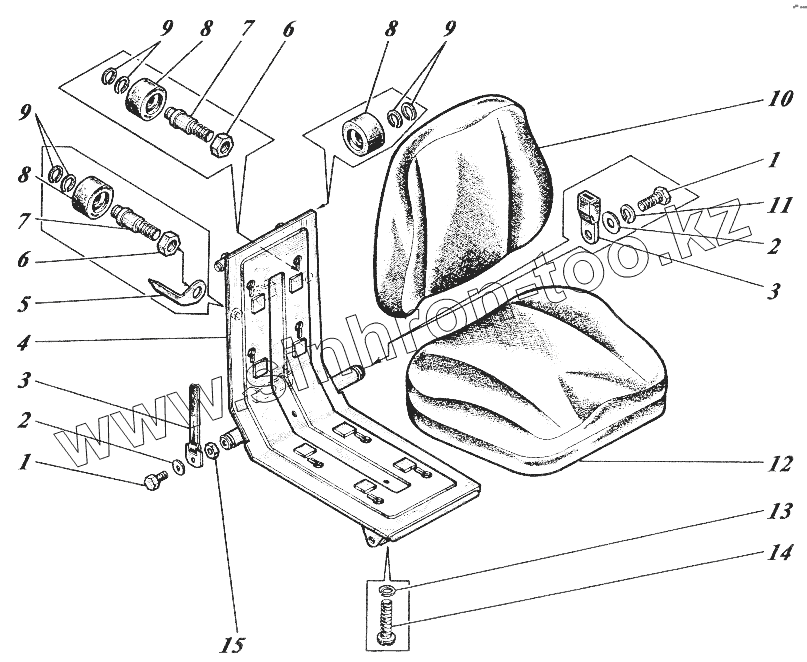 Каталог запасных частей к технике: КМЗ МКСМ-800. Сиденье 533-9-62-44-000-1К