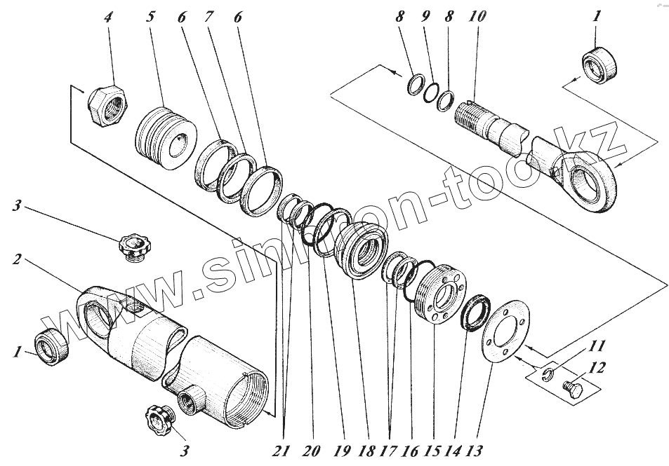 Каталог запасных частей к технике: КМЗ МКСМ-800Н. Гидроцилиндр 533-9-62-19-1232-1К