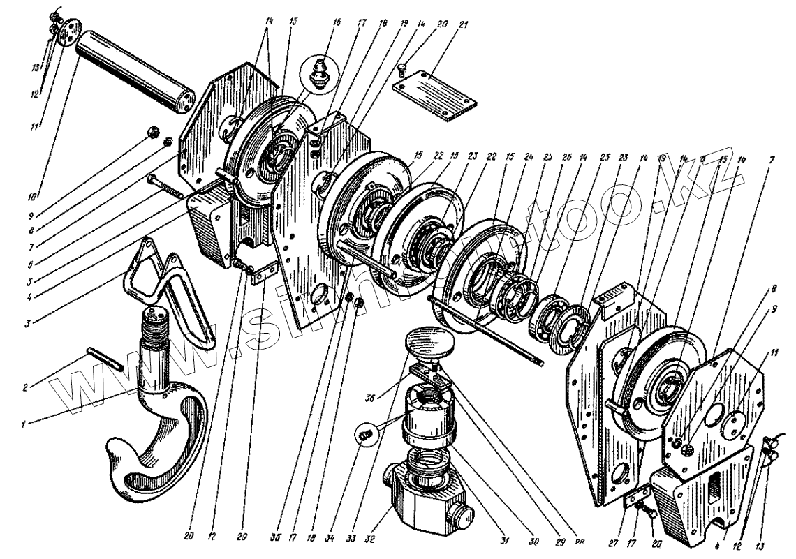 Каталог запасных частей к технике: КМЗ 1 Мая КДЭ-163. Обойма крюковая. (23-13000)