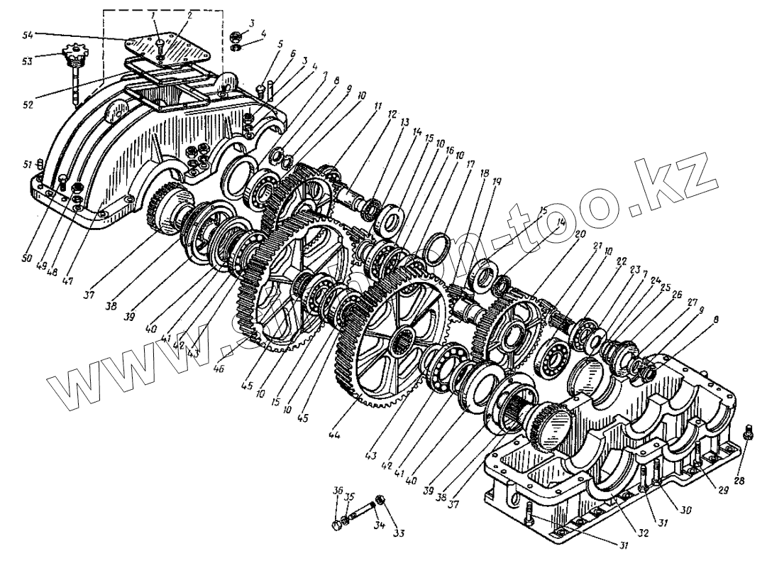 Каталог запасных частей к технике: КМЗ 1 Мая КДЭ-163. Редуктор. (23-06020)