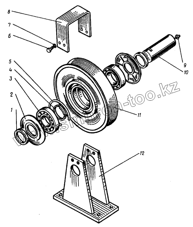 Каталог запасных частей к технике: КМЗ 1 Мая КДЭ-163. Ролик поддерживающий. (23-16040)