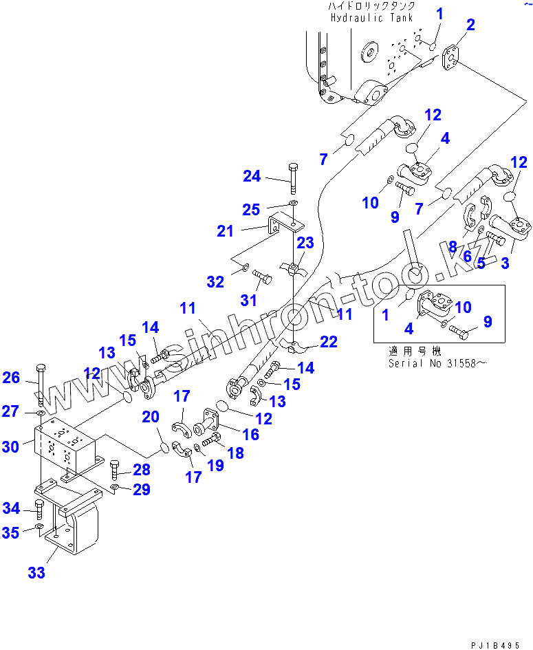 Каталог запасных частей к технике: Komatsu D155C-1. COUNTER WEIGHT PIPING (2/2)(31586-)