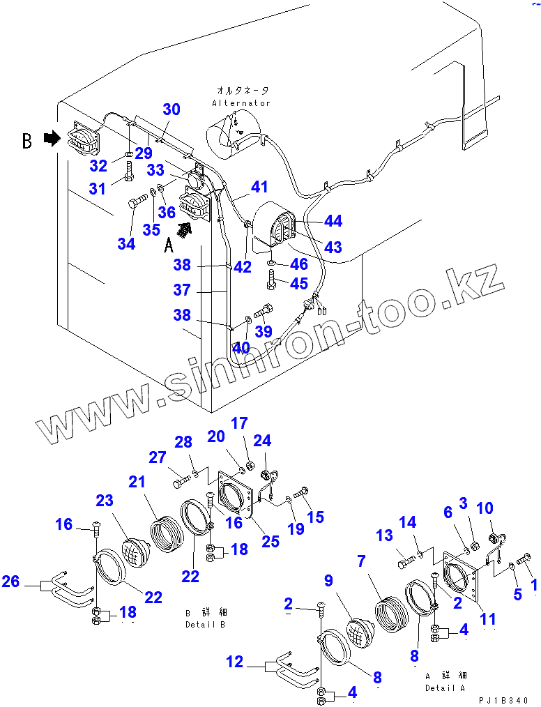 Каталог запасных частей к технике: Komatsu D155C-1. HEAD AND SIDE LAMP(15686-31591)