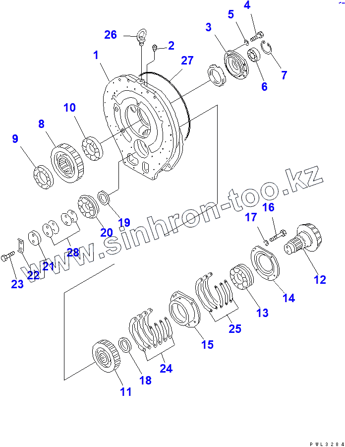 Каталог запасных частей к технике: Komatsu D155C-1. TORQFLOW TRANSMISSION TRANSFER(15686-31302)