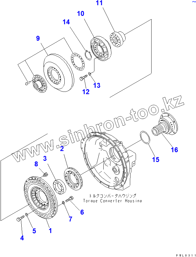 Каталог запасных частей к технике: Komatsu D155C-1. TORQUE CONVERTER BARE(31303-31563)